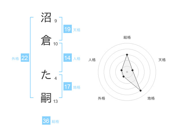 沼倉 た嗣さんを姓名の画数から五運を鑑定