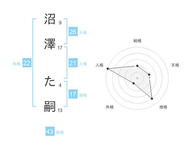 沼澤 た嗣さんを姓名の画数から五運を鑑定