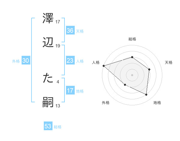 澤辺 た嗣さんの総格は53画の3点!
