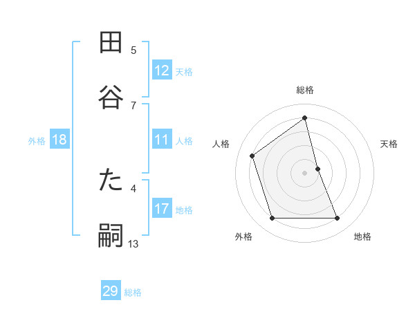田谷 た嗣さんの総格は29画の4点!