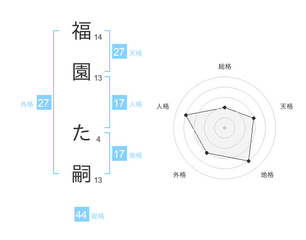 福園 た嗣さんを姓名の画数から五運を鑑定