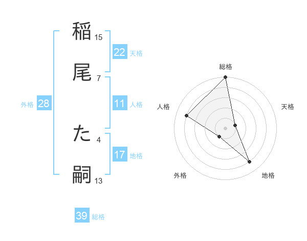 稲尾 た嗣さんの総格は39画の5点!