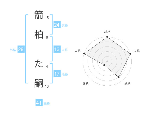 箭柏 た嗣さんの総格は41画の5点!