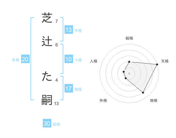 芝辻 た嗣さんを姓名の画数から五運を鑑定