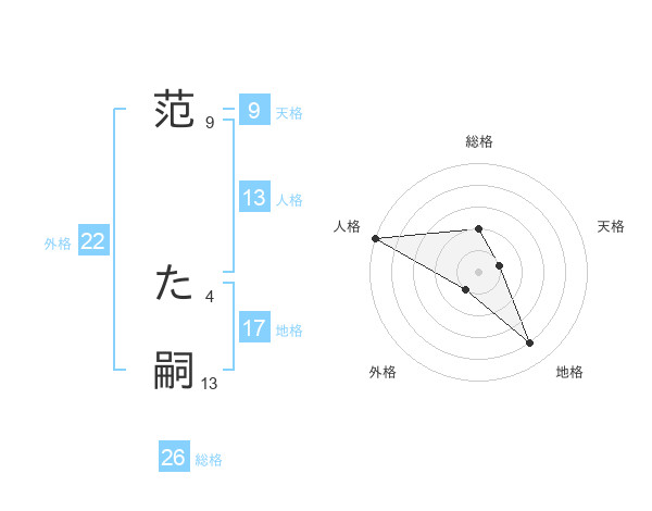 范 た嗣さんの総格は26画の2点!