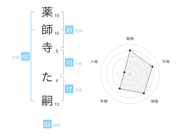 薬師寺 た嗣さんを姓名の画数から五運を鑑定