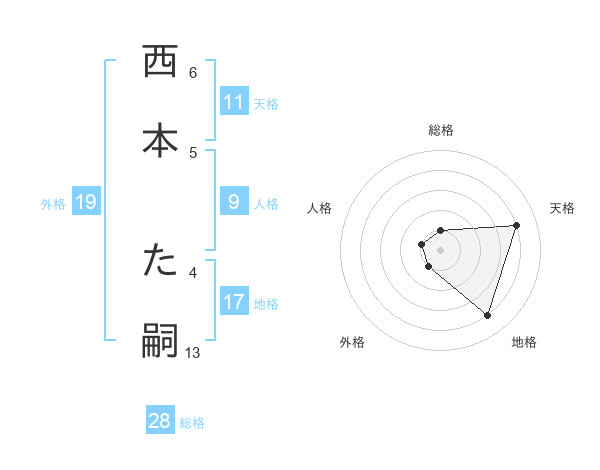 西本 た嗣さんを姓名の画数から五運を鑑定