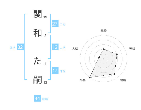 関和 た嗣さんの総格は44画の2点!