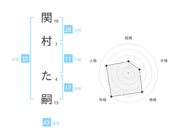 関村 た嗣さんを姓名の画数から五運を鑑定