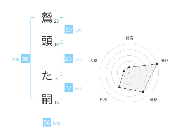 鷲頭 た嗣さんを姓名の画数から五運を鑑定