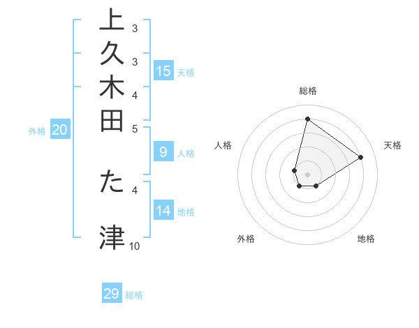 上久木田 た津さんを姓名の画数から五運を鑑定