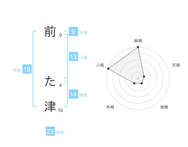 前 た津さんの総格は23画の5点!