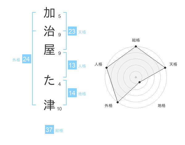 加治屋 た津さんを姓名の画数から五運を鑑定