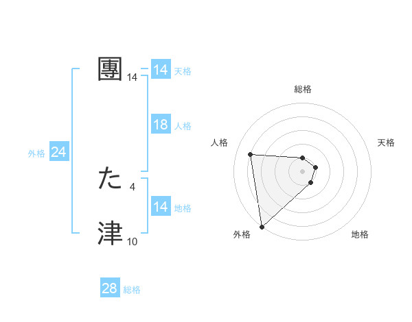 團 た津さんの天格は14画の1点!