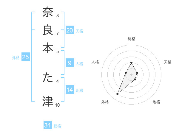 奈良本 た津さんを姓名の画数から五運を鑑定