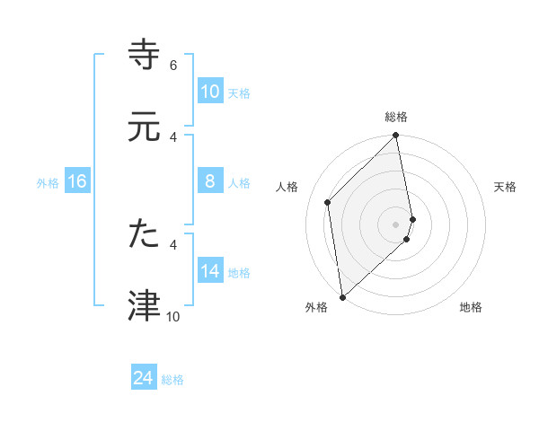 寺元 た津さんの総格は24画の5点!