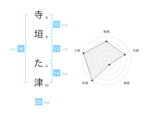 寺垣 た津さんの総格は29画の4点!