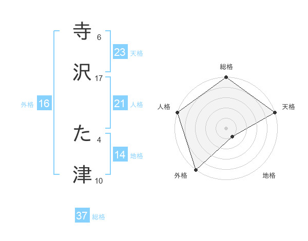 寺沢 た津さんを姓名の画数から五運を鑑定