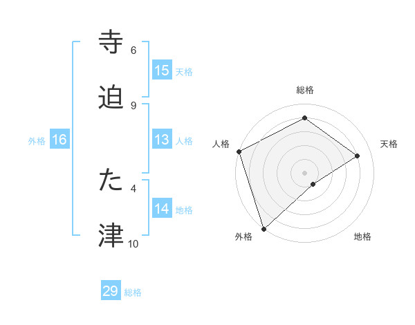 寺迫 た津さんの総格は29画の4点!