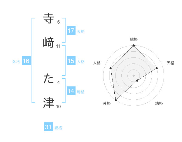 寺﨑 た津さんの総格は31画の5点!