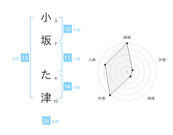 小坂 た津さんの外格は13画の5点!
