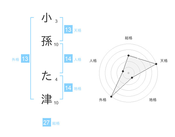小孫 た津さんの外格は13画の5点!