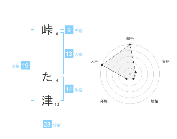 峠 た津さんの総格は23画の5点!