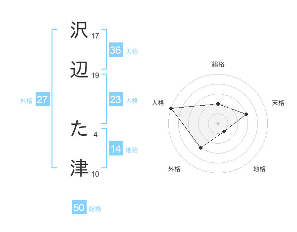 沢辺 た津さんの総格は50画の2点!