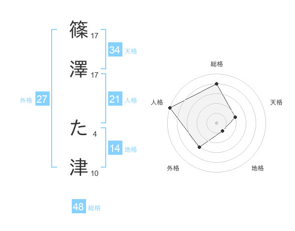 篠澤 た津さんを姓名の画数から五運を鑑定