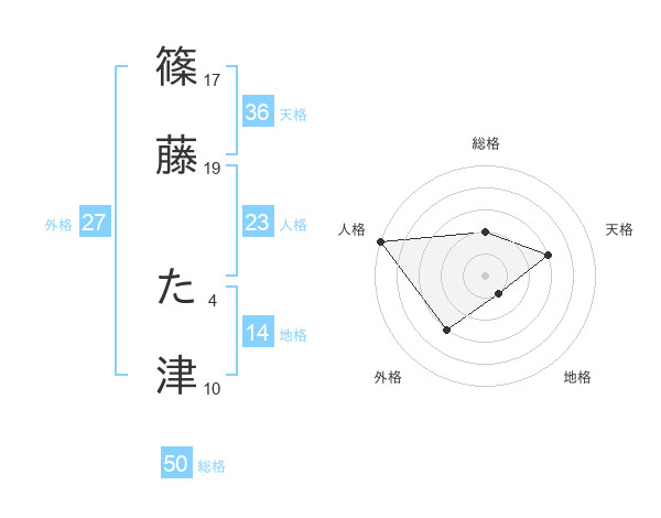 篠藤 た津さんを姓名の画数から五運を鑑定