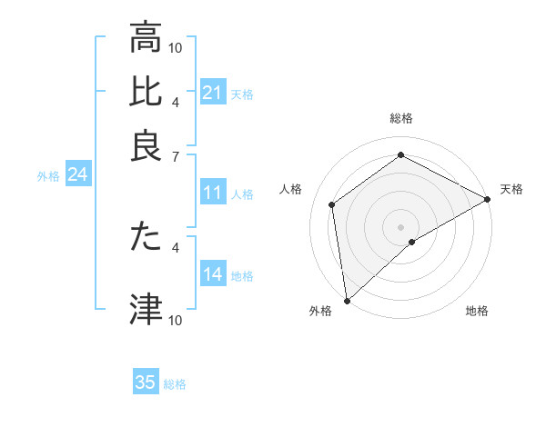 高比良 た津さんの天格は21画の5点!