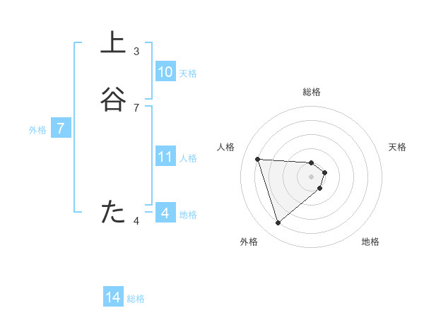 上谷 たさんの天格は10画の1点!