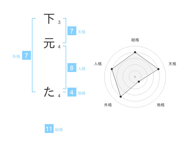 下元 たさんの総格は11画の4点!