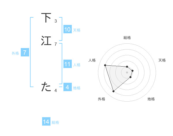 下江 たさんの総格は14画の1点!