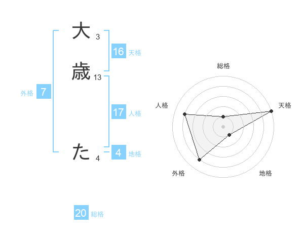 大歳 たさんの天格は16画の5点!