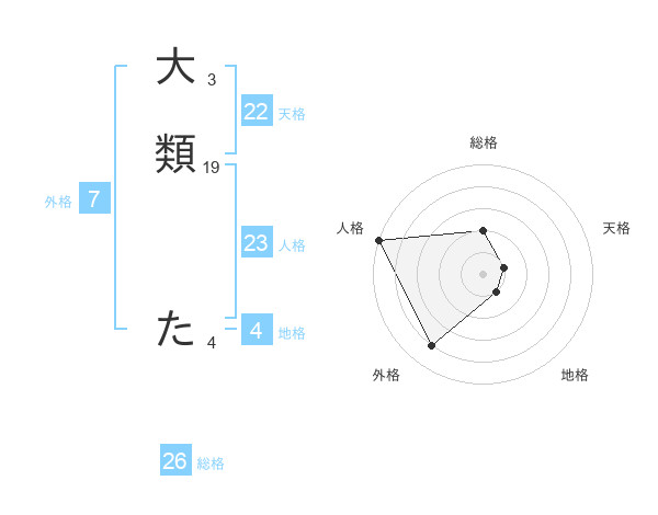 大類 たさんの天格は22画の1点!