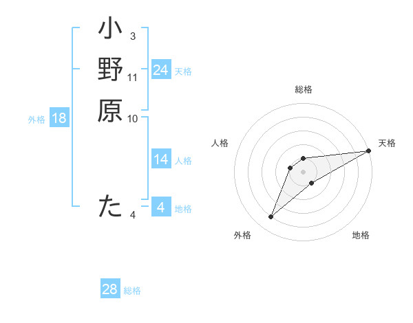 小野原 たさんの天格は24画の5点!