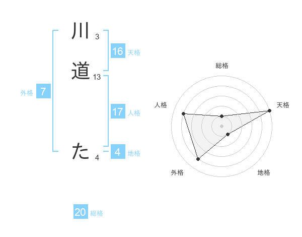 川道 たさんの総格は20画の1点!