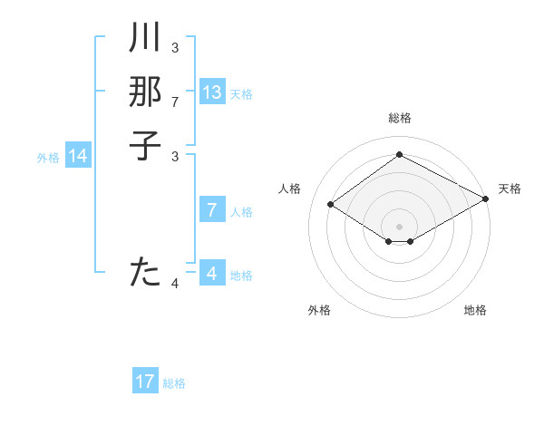 川那子 たさんの天格は13画の5点!