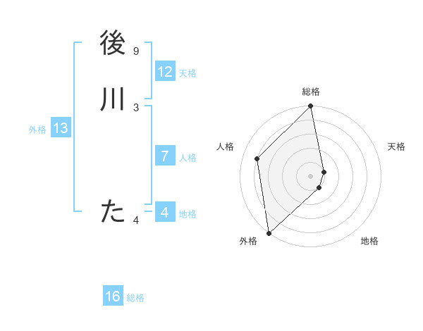 後川 たさんの外格は13画の5点!