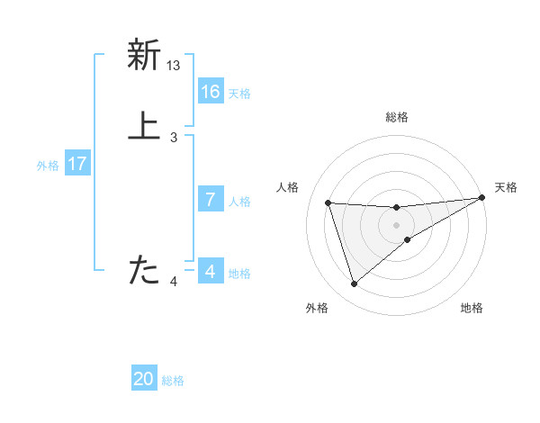 新上 たさんの総格は20画の1点!