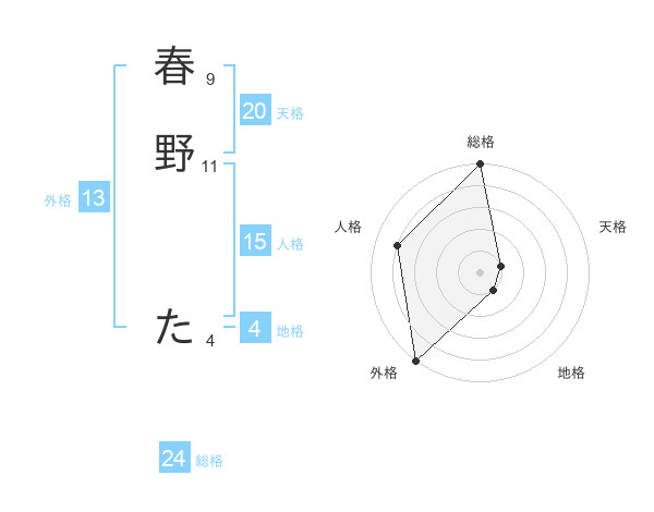 春野 たさんの外格は13画の5点!
