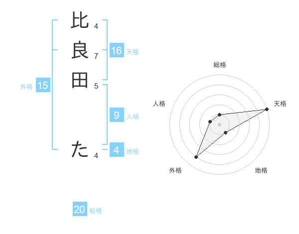 比良田 たさんの天格は16画の5点!