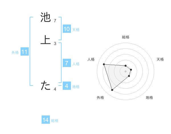池上 たさんの総格は14画の1点!