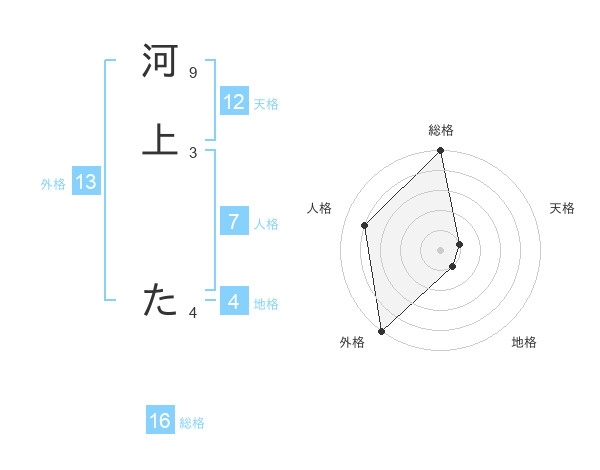 河上 たさんの外格は13画の5点!