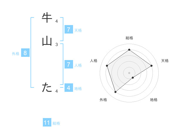 牛山 たさんの総格は11画の4点!