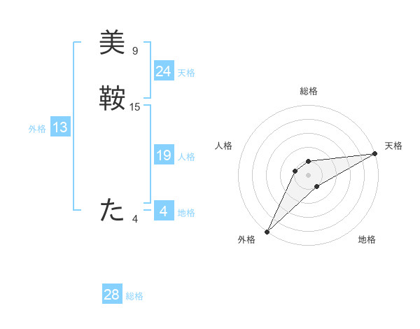 美鞍 たさんの外格は13画の5点!