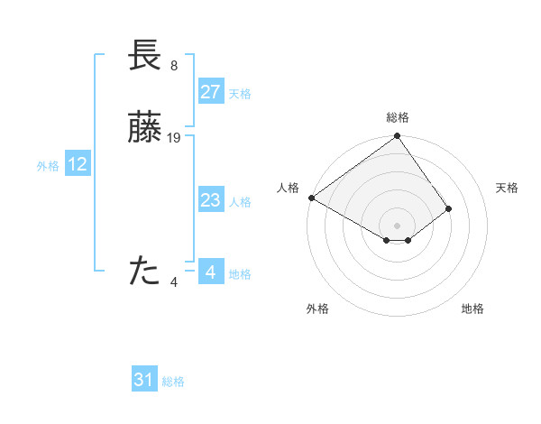 長藤 たさんの総格は31画の5点!