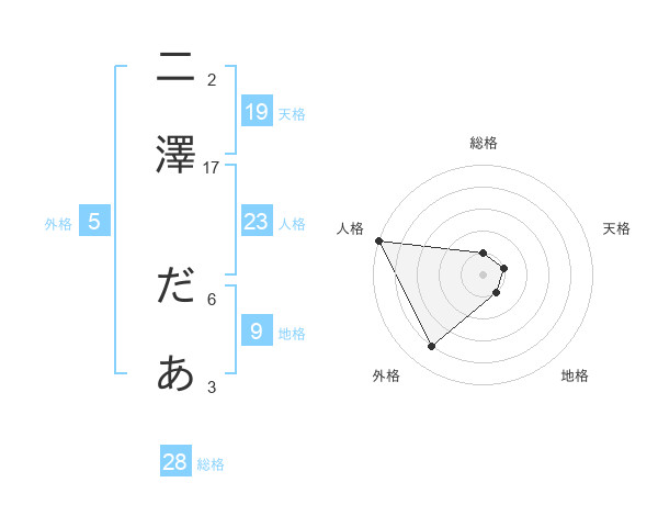 二澤 だあさんの人格は23画の5点!