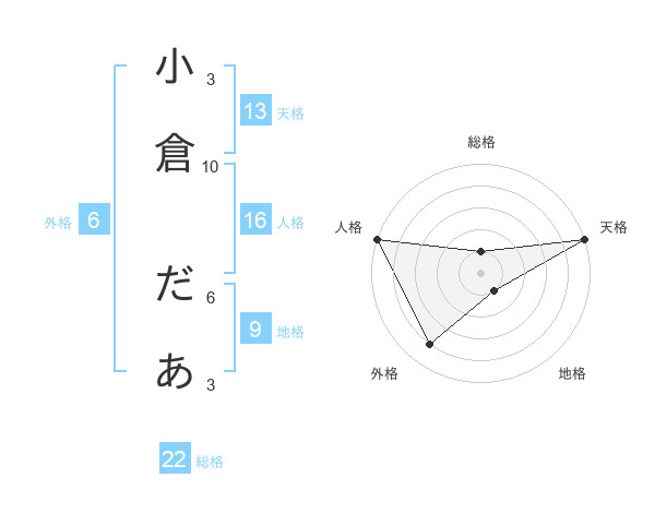 小倉 だあさんの天格は13画の5点!